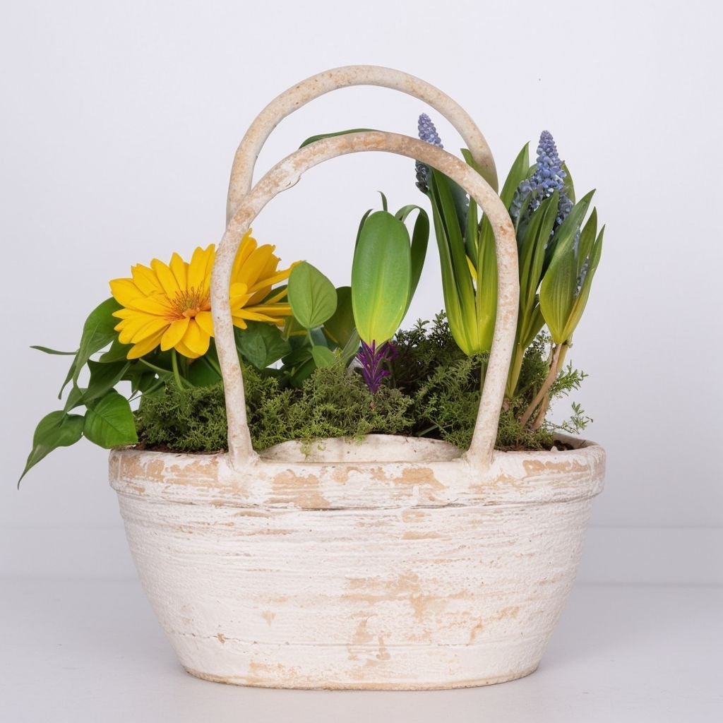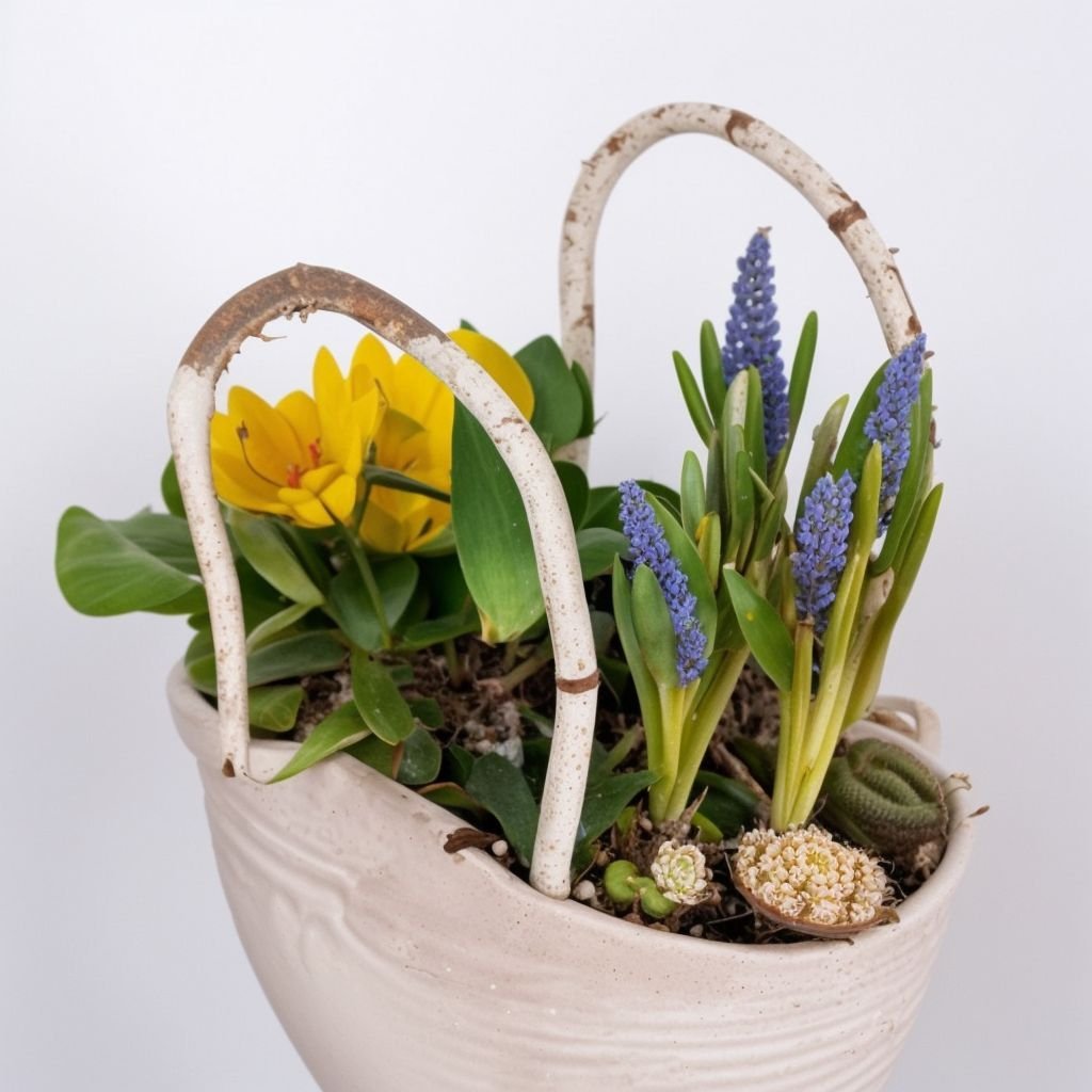 Kompozycja z hiacyntu, pierwiosnka i szafirka poprawi Ci humor. Będzie wspaniałym prezentem dla przyjaciół, rodziny i bliskich. Taka niespodzianka wniesie odrobinę ciepła i przytulności do Twojego domu.
