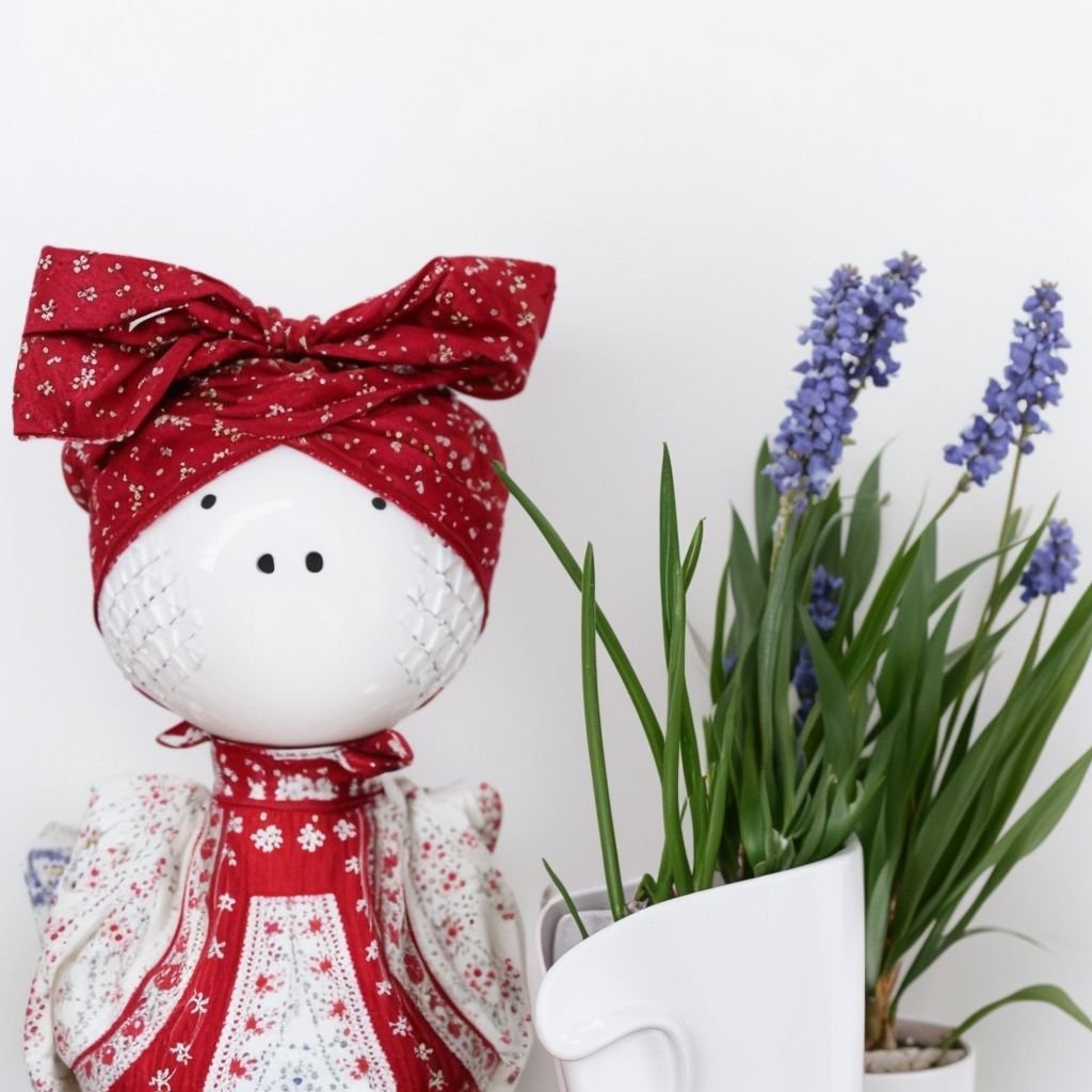Lalka do wnętrz z szafirkami to wspaniały element wystroju, który nada Twojemu domowi lub biuru przytulności i wiosennego ogrodu. Szafirek symbolizuje wiosnę i radość, dlatego obecność tej rośliny we wnętrzu ucieszy oczy i wywoła pozytywne emocje. Ta lalka do wnętrz z szafirkami przyciąga wzrok naturalnym pięknem i delikatnością. Delikatne kwiaty i zielone liście tworzą wrażenie świeżości i lekkości, wypełniając pomieszczenie atmosferą wiosennego nastroju.