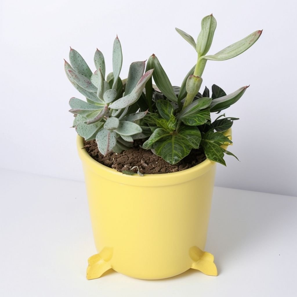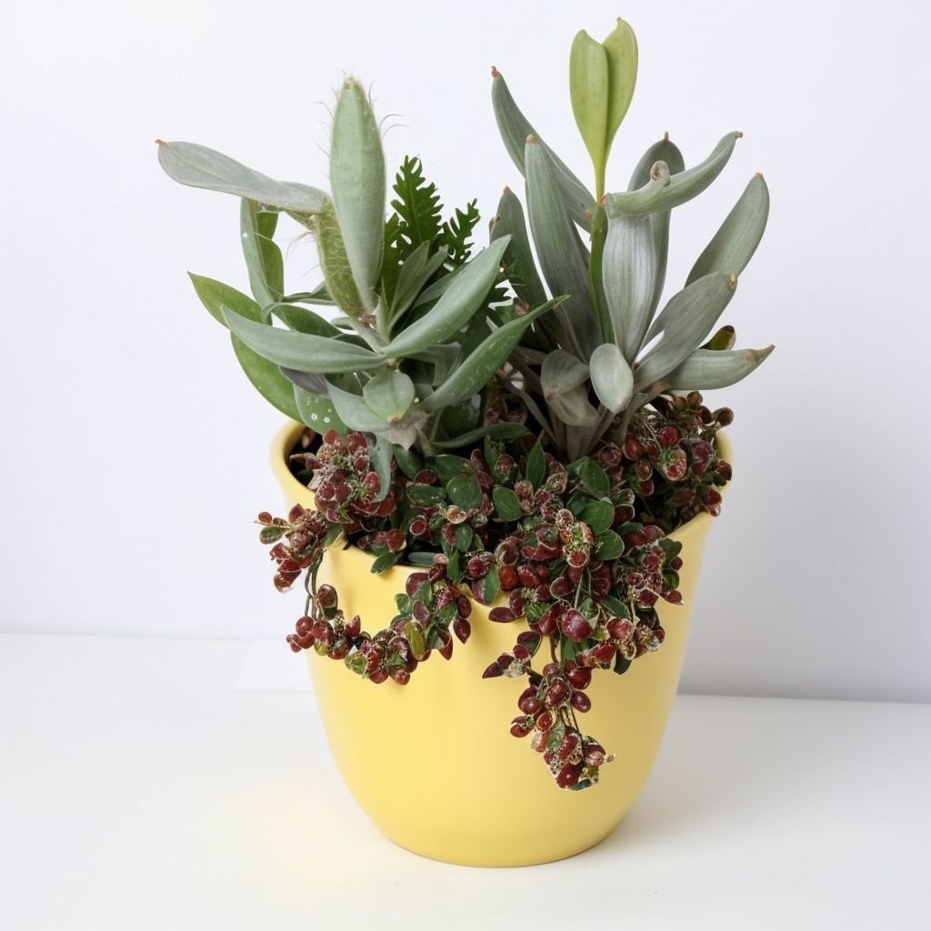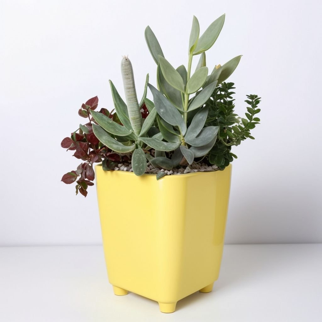 Niewielka, ale przytulna kompozycja. Harmonijnie dobrane sukulenty i naturalny wystrój tworzą ciekawy design. Taka kompozycja z łatwością i dyskretnie ozdobi wnętrze, wniesie cząstkę świata roślin do Twojego domu lub biura i stanie się miłym, ekskluzywnym prezentem.