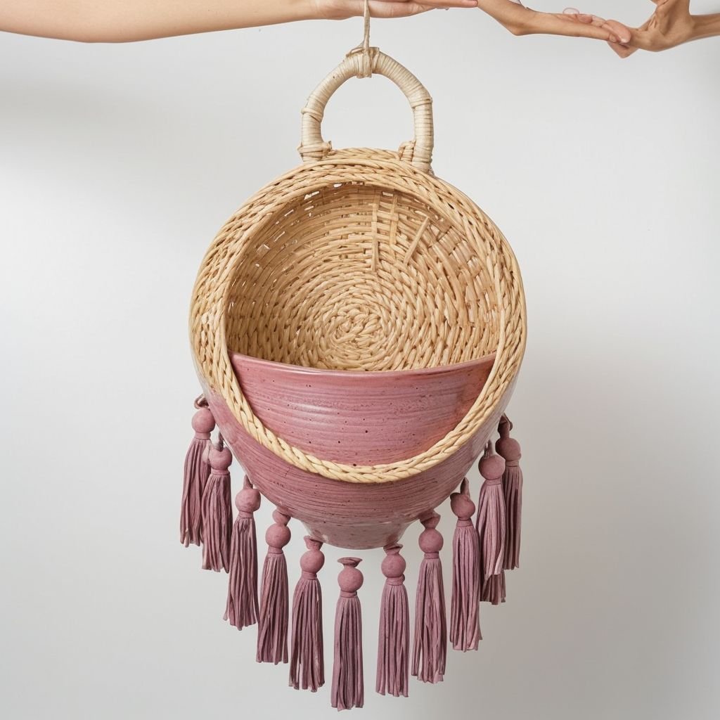 Wisząca donica łączy w sobie splot makramy i wiklinowy kosz z pnącza. Można ją łatwo zawiesić na haczyku na suficie lub na ścianie. Piękny wiklinowy kosz ukryje doniczkę. Nie musisz przesadzać rośliny do nowej donicy, aby dopasować ją do wnętrza. Taki kosz pomoże nie tylko stylowo ustawić rośliny, ale także doda wnętrzu jasnego akcentu. Idealny na parapetówkę lub wyjątkowy prezent. Uwaga! * Kosze występują w dwóch wariantach, podaj w komentarzach, który kolor wybrałeś i ciesz się pięknem. ** Roślina na zdjęciu nie jest wliczona w cenę, ale zawsze możesz ją zamówić tutaj.