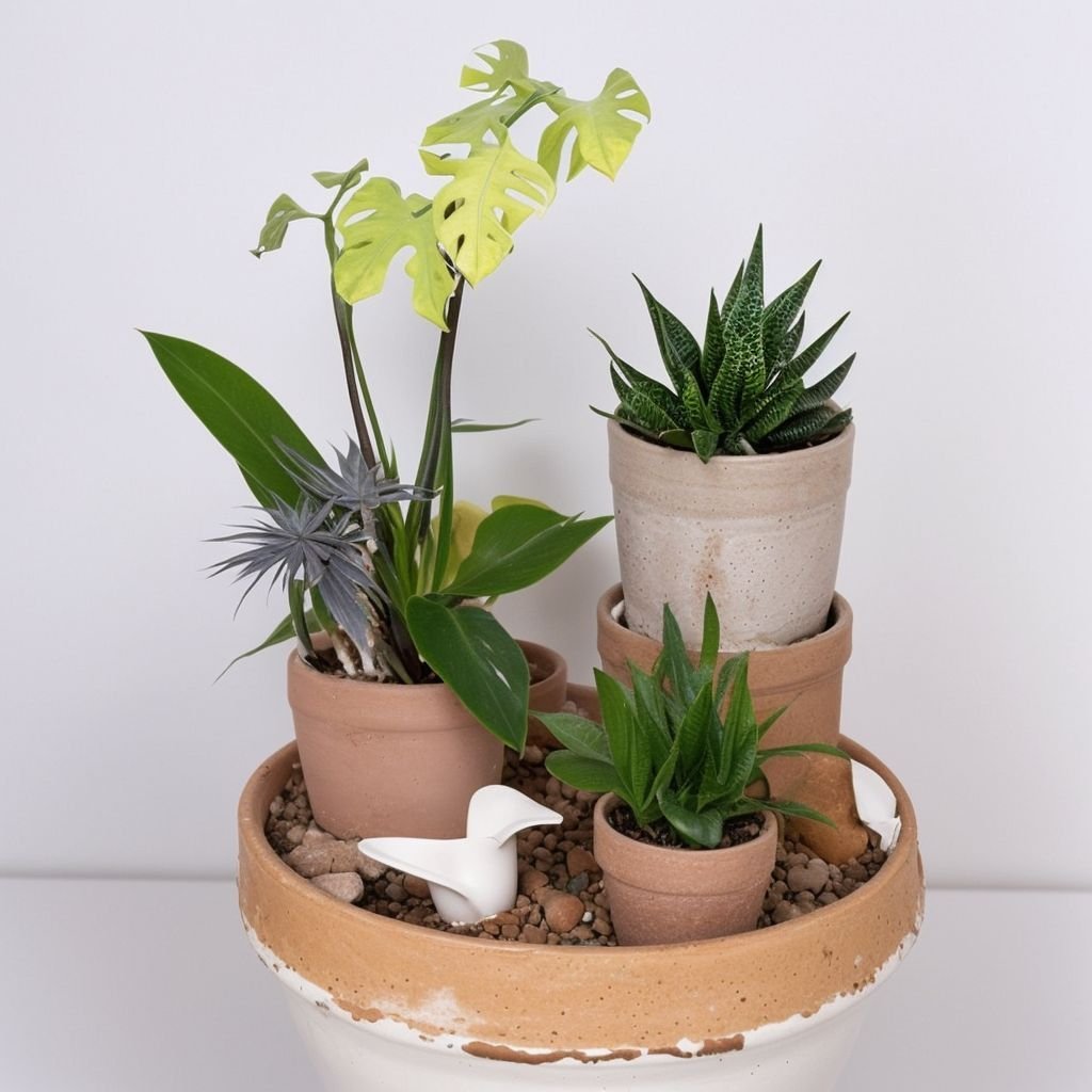 Wykwintny zestaw prezentowy, który łączy estetykę natury z duchowym ukojeniem. Kompozycję z haworsji, storczyków i krasuli w stylowej doniczce uzupełnia dekoracyjny ceramiczny ptaszek, wiklinowa taca i drewniany stojak. Każdy element został przemyślany w najdrobniejszych szczegółach, aby stworzyć atmosferę spokoju, inspiracji i ciepła. Idealny na prezent lub do stworzenia wyjątkowego kącika w Twojej przestrzeni.